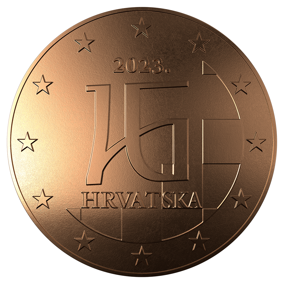 Nacionalna strana: Motiv glagoljice koji prikazuje sjedinjena slova H i R. U donjem desnom segmentu kovanice nalazi se šahovnica, a ispod glagoljice vidljiv je natpis HRVATSKA.