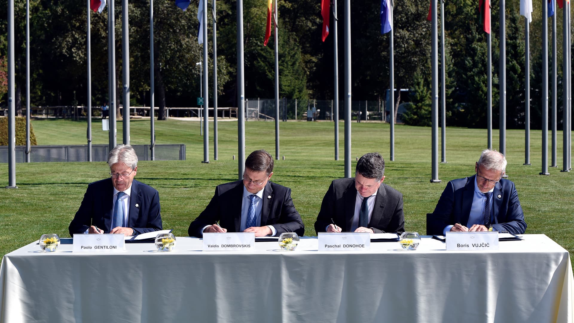 Memorandum o razumijevanju potpisali su izvršni potpredsjednik Europske komisije Valdis Dombrovskis, povjerenik za gospodarstvo Paolo Gentiloni, predsjednik Euroskupine Paschal Donohoe i guverner Hrvatske narodne banke Boris Vujčić.